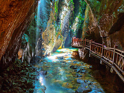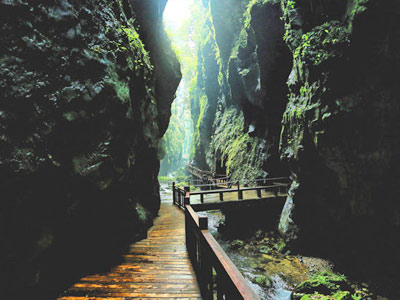 張家界朝陽(yáng)地縫景區(qū)地處慈利縣朝陽(yáng)境內(nèi),全長(zhǎng)5公里,垂直深度近200米。朝陽(yáng)地縫為趙家埡庫(kù)區(qū)流水經(jīng)幾億年沖刷而形成的100多米深的崖縫,兩崖最窄處僅一米多寬,景色集奇、秀、險(xiǎn)、野、幽于一體。景區(qū)內(nèi)溪水清澈,空氣清新,冬暖夏涼,四季如春,是旅游觀光、避暑休閑、考察探險(xiǎn)的好去處。